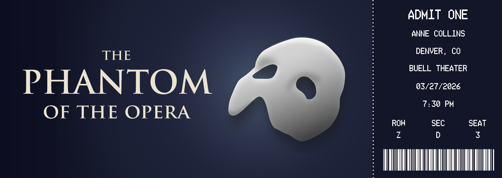 For Christmas, my sister and I got my mom tickets to see Phantom of the Opera. To give her something to physically unwrap on Christmas morning, I decided to make her a fully custom, fully designed by me playbill. All information in this playbill is 100% accurate. Illustrations were made in Adobe Illustrator. Playbill and tickets designed in Adobe InDesign.